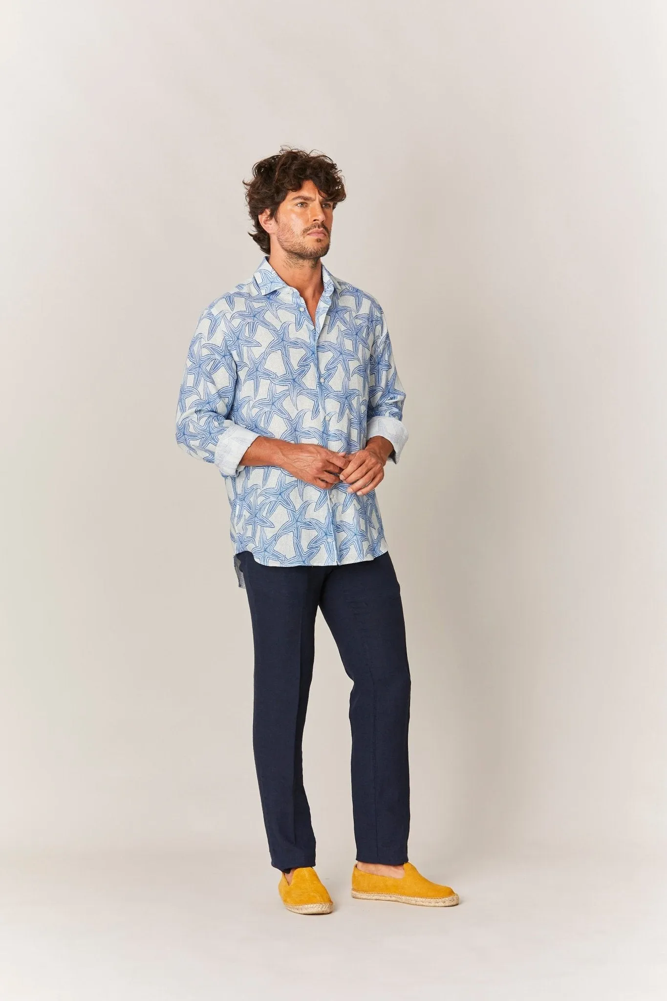 Soloio linen shirt, featuring an exclusive design from our limited edition Vasari collection. Crafted from 100% linen, it's soft, comfortable, and elegant, with adjustable buttons. Made using environmentally friendly natural dye processes. Thanks to our production methods and care, our linen garments maintain their color and quality. Linen is renowned for its loose nature, so we recommend choosing a smaller size for linen shirts if you prefer a less loose fit.